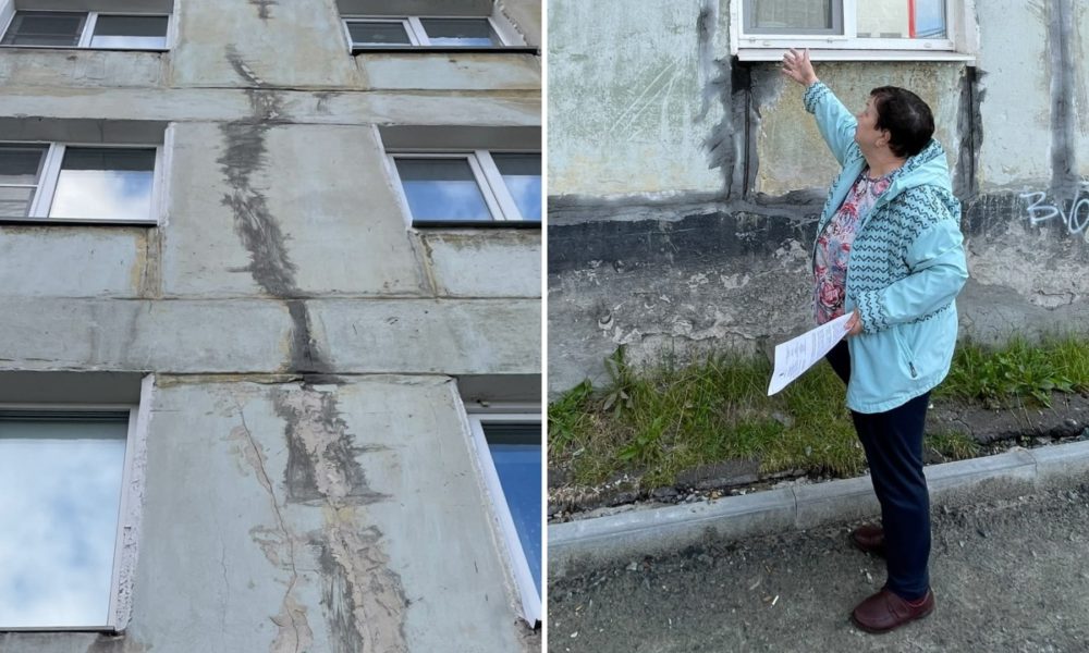 Со слов жильцов, дом вибрирует, когда проходит поезд: на диване можно покачаться. Трещины образовались не на стыках блоков, как бывает чаще всего, — лопнули сами блоки. Поставленные маячки показывают, что трещины расходятся.