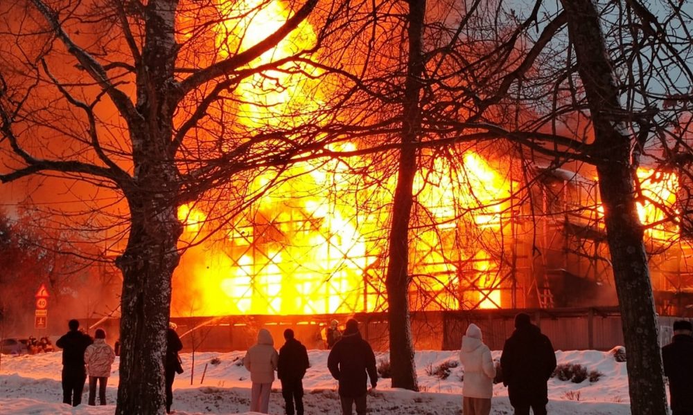 В Петрозаводске загорелось старейшее историческое здание на площади Ленина. Деревянное здание было объято пламенем за считанные минуты.