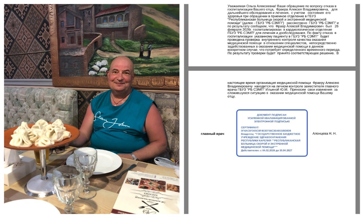 60-летний житель Сегежи, ветеран войны в Афганистане и инвалид II группы, скончался в больнице Петрозаводска. Перед смертью ему отказали в экстренной госпитализации в Республиканской больнице скорой помощи (РБ СЭМП), родным пришлось обращаться к министру, чтобы тяжелого пациента взяли в больницу.