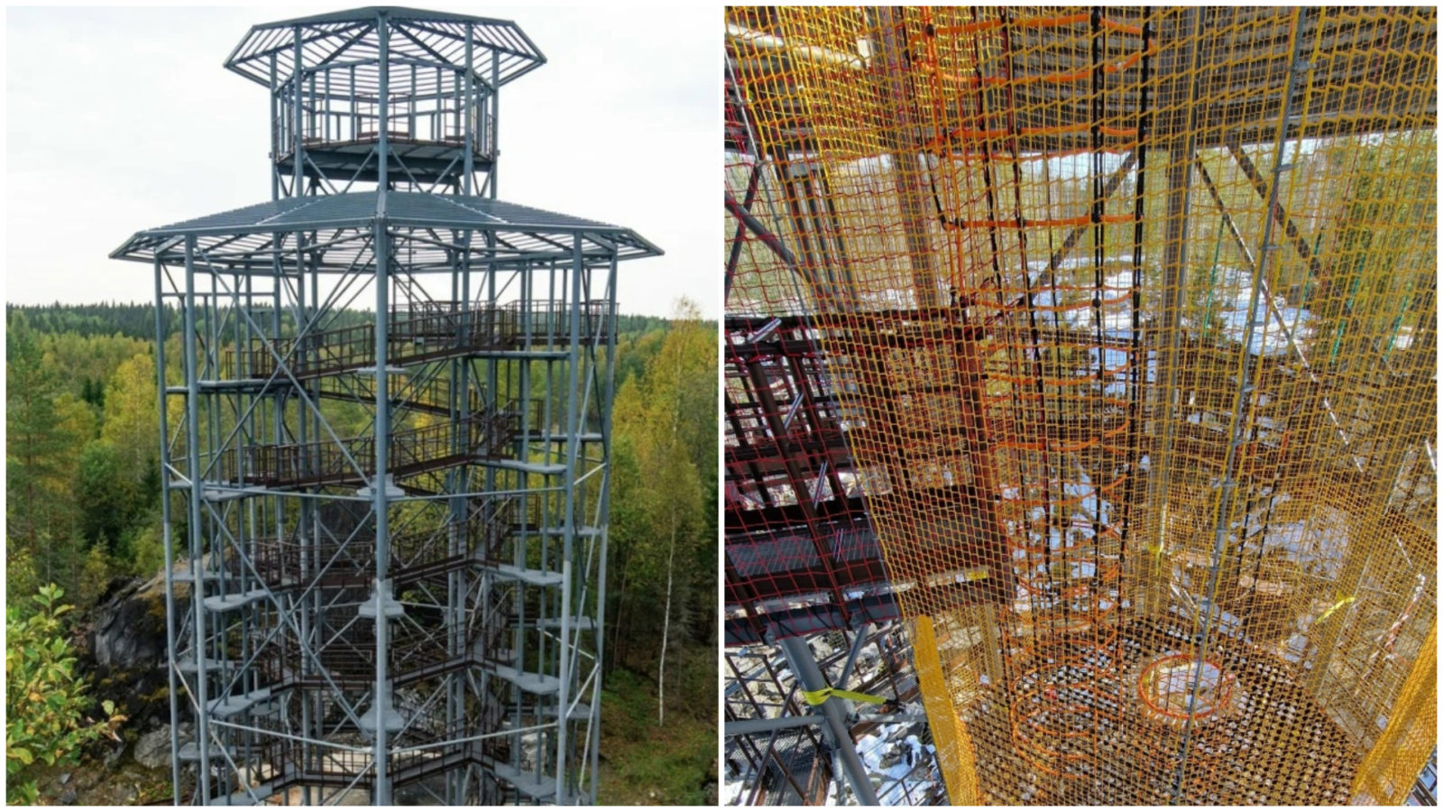 Оснащение веревочного парка "Башня" в Горном парке "Рускеала" завершается. Все этапы и линия страховки смонтированы.