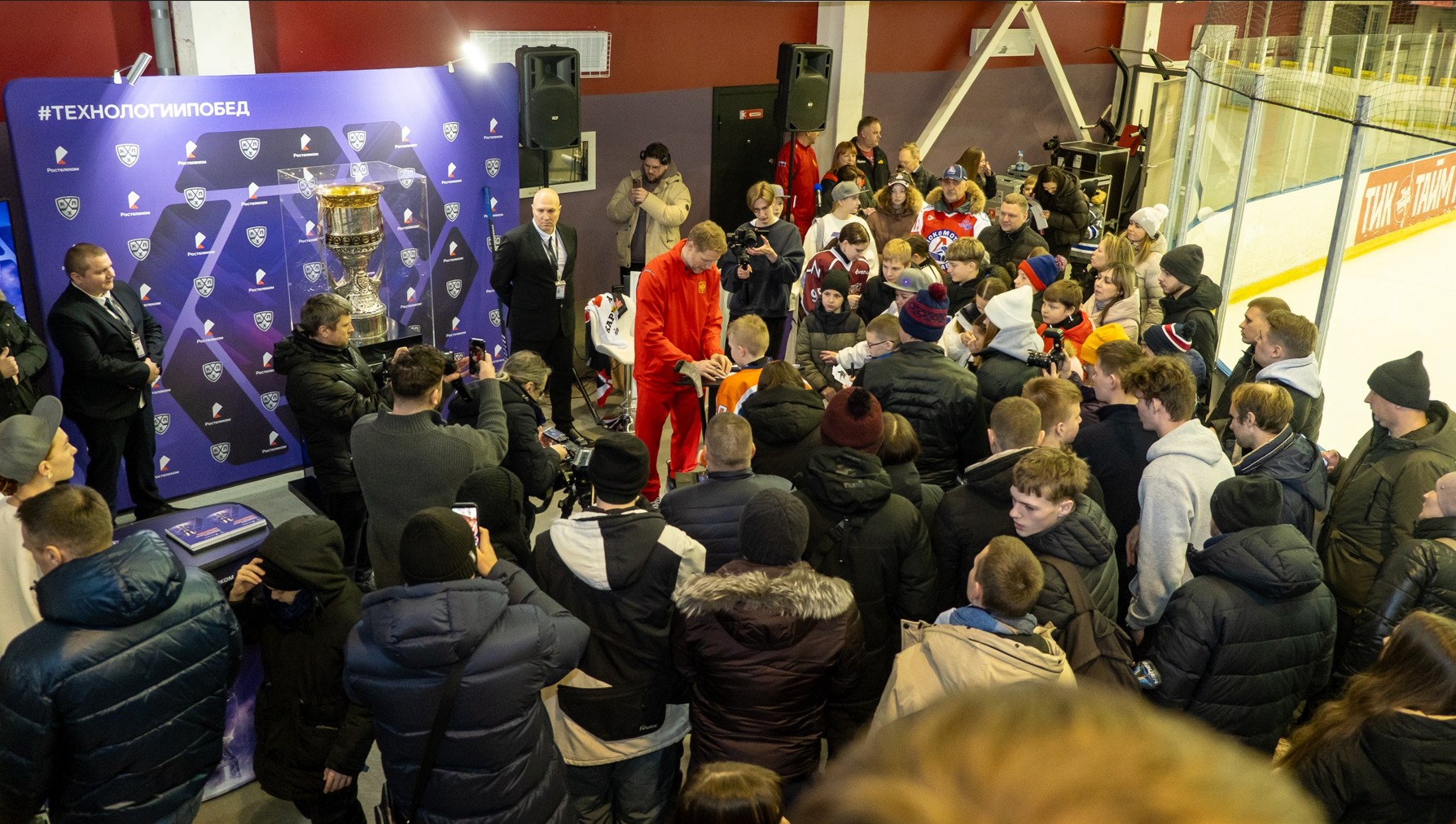 После мастер-классов началась автограф-сессия с Сергеем Андроновым. Дети выстраивались в очередь с клюшками, шлемами, даже с тетрадками. Сергей с радостью подписывал всё, отвечал на вопросы ребят и взрослых, шутил.