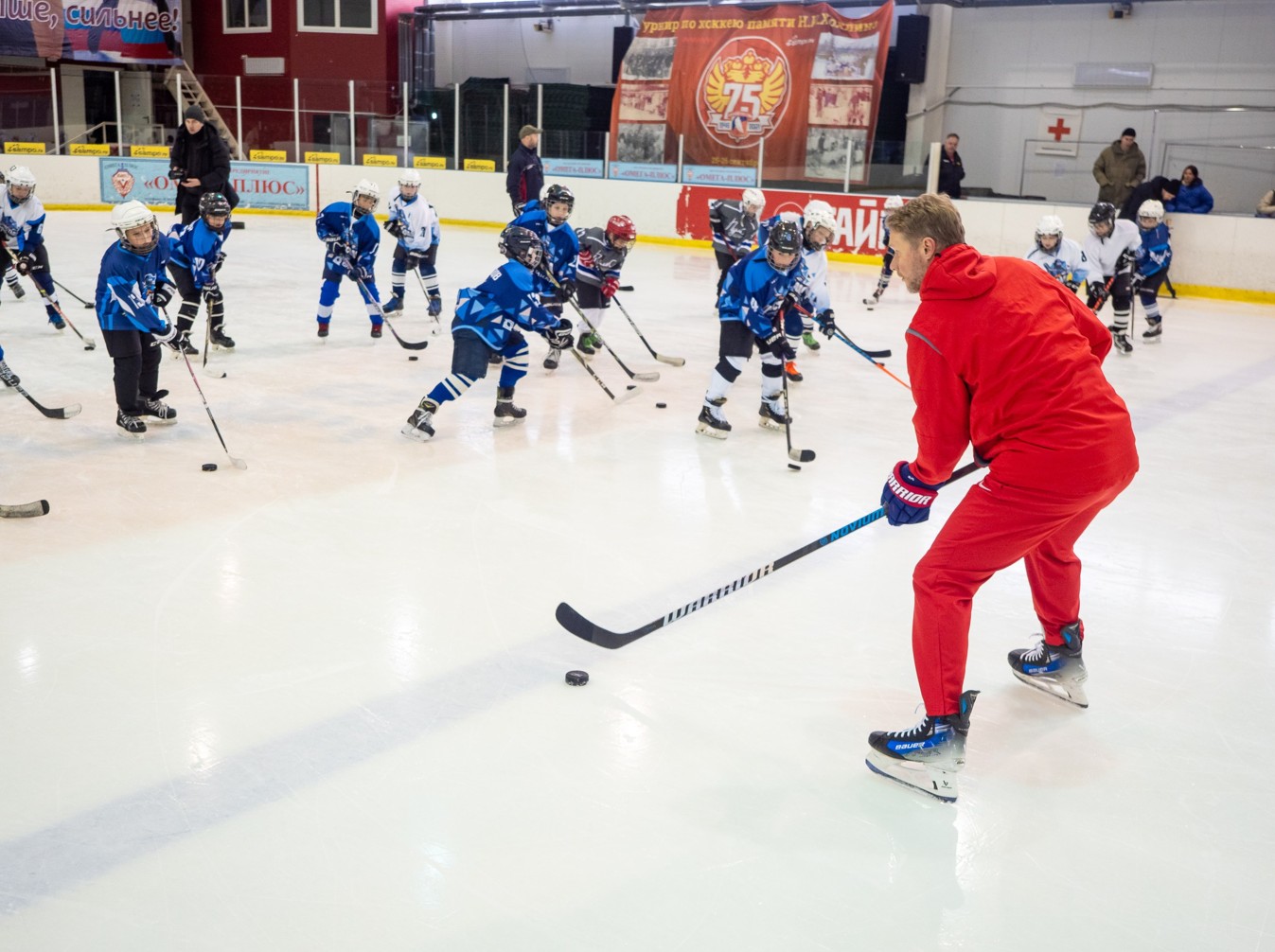 — Быть на льду — это круто. Играть в хоккей — круто, выигрывать — еще лучше. А любить то, чем занимаешься — прекрасно. Поэтому я бы хотел ребятам пожелать именно любить это дело, заниматься этим с настроением, с любовью, и тогда всё обязательно получится, — дал напутствие олимпийский чемпион перед занятием.
