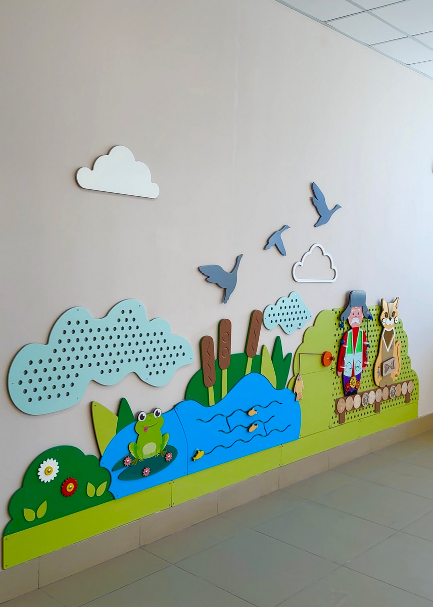 Развивающих площадок для них здесь организовано множество. На безопасной территории вокруг садика есть все от горок и качелей с милыми жирафиками и барсуками до стендов для игры в кафе и магазин. И внутри здания заботливо предусмотрено все необходимое для счастливого детства: уютные группы с игровыми зонами и просторные спальни, спортивный зал и класс для обучающих и творческих занятий… Скучать точно не придется!