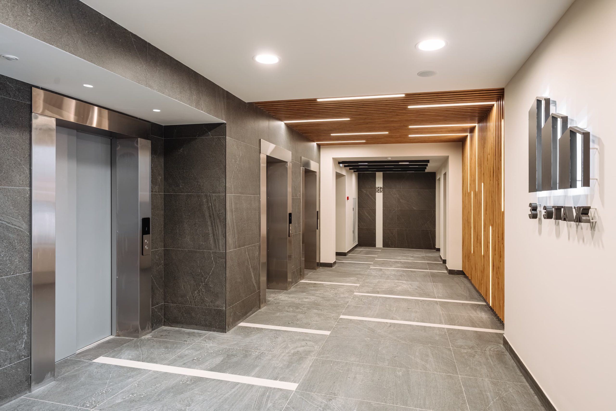 Внутреннее оформление — еще одна гордость строительной компании «Век». Холлы, коридоры и даже эвакуационные лестницы выполнены по индивидуальному дизайн-проекту с использованием современных интерьерных решений и эффектной подсветки. Все это можно оценить во время индивидуальной экскурсии, которую с удовольствием организуют менеджеры офиса продаж.