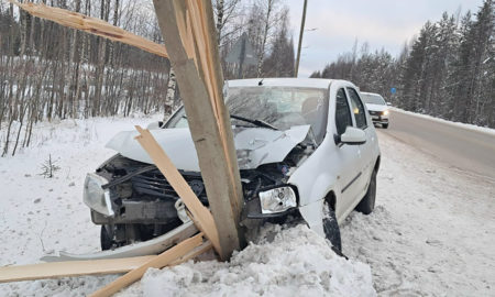 В Карелии машина вылетела с дороги и врезалась в столб. Один человек пострадал. ДТП произошло 27 ноября в 11:45 на 2-м км...