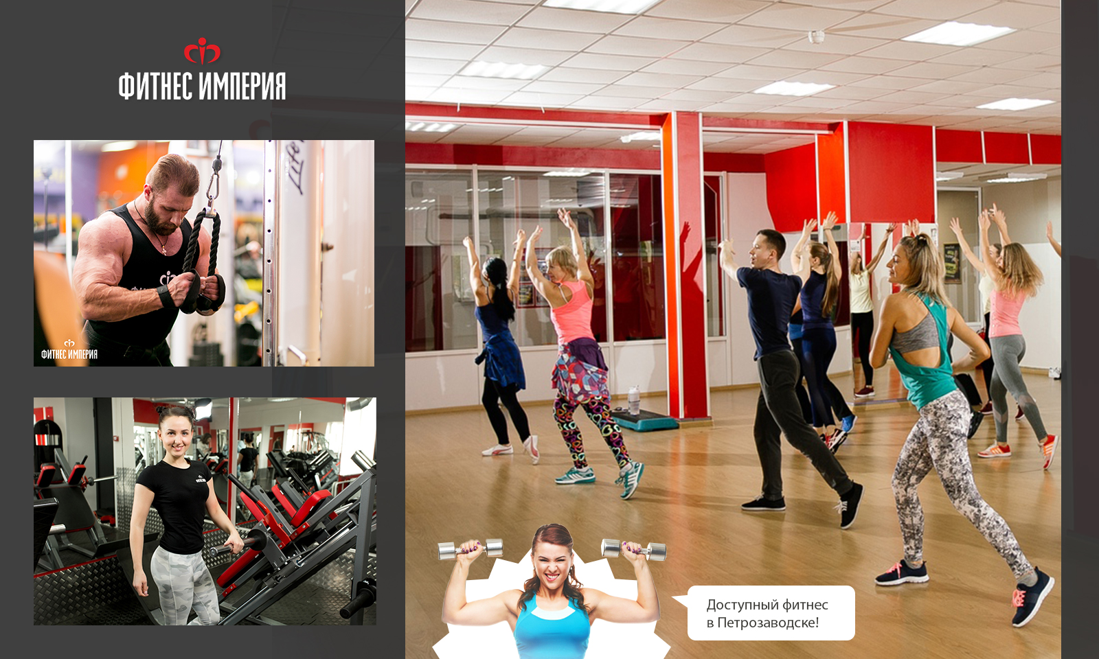 ФИТНЕС ИМПЕРИЯ – это современная сеть фитнес-клубов. Мы регулярно обновляем оборудование в залах и программы групповых занятий, чтобы наш фитнес каждому пришелся по вкусу. С нами проводить время с пользой легко!