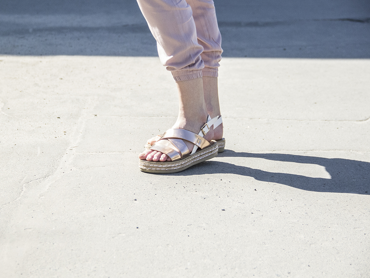 На мне сегодня брюки из H&M, кофточка – Concept Club. Пиджак, не поверите, купила в Украине, на рынке. Сандалии из Lost Ink, купила через Интернет. Рюкзак Tervolina.