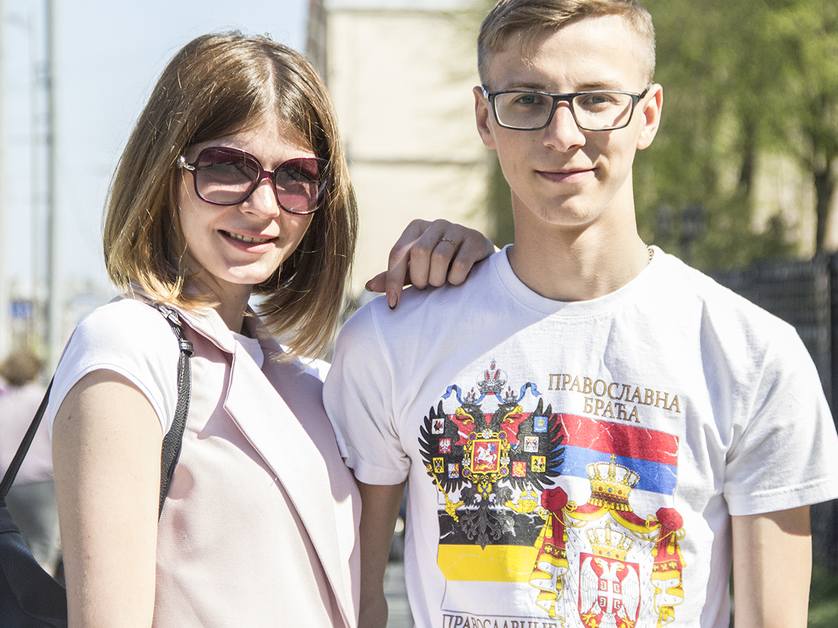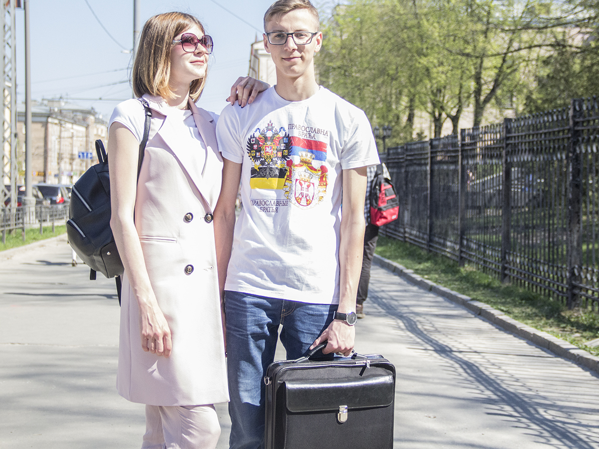 — Футболку привез из Сербии как сувенир. Теперь ношу постоянно. Джинсы и ремень из Levi’s. Сегодня у нас занятия, в университет одеваешься прилично. Мы учимся на медицинском, и, например, в шортах не придешь на пары: мне очень жарко сейчас в джинсах, но шорты с халатом никак не надеть. В другое время одеваюсь проще.