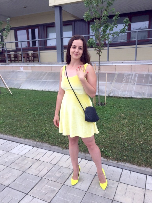 — Ненавижу ходить по магазинам, не знаю, как можно провести в торговом центре больше часа: куча людей, очередь в примерочную, в Петрозаводске еще бедный ассортимент и заоблачные цены. Люблю покупать в Интернете. Это платье с Asos, купила на распродаже за 500 рублей. Сумочка H&M, туфли неизвестного бренда, купленные шесть лет назад на свадьбу сестры.