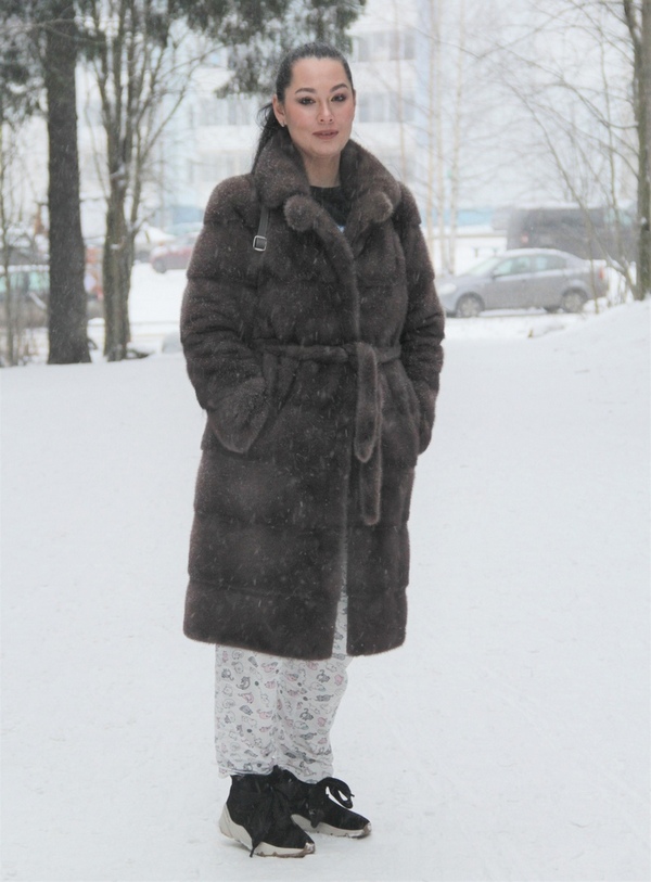Анна ходит по улице в шикарной шубе, кофте за 17 тысяч рублей и... пижаме! И не заморачивается по поводу того, как она выглядит