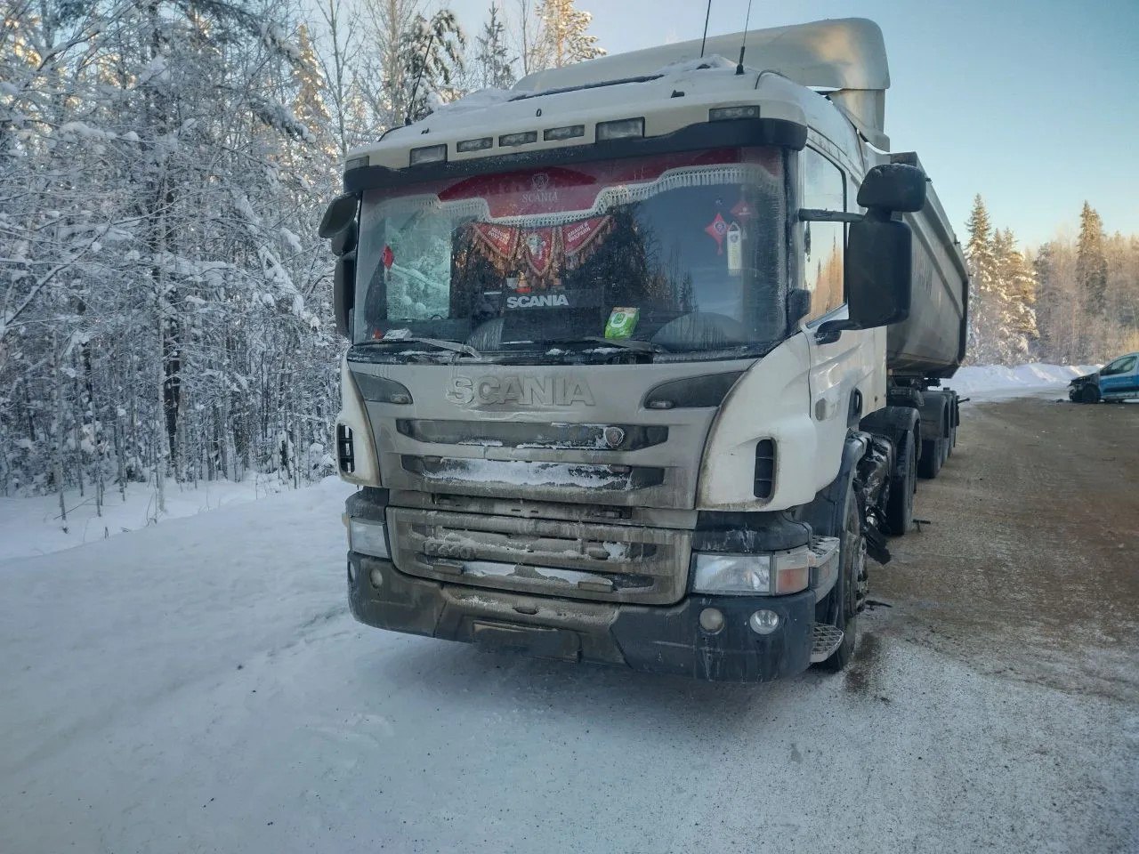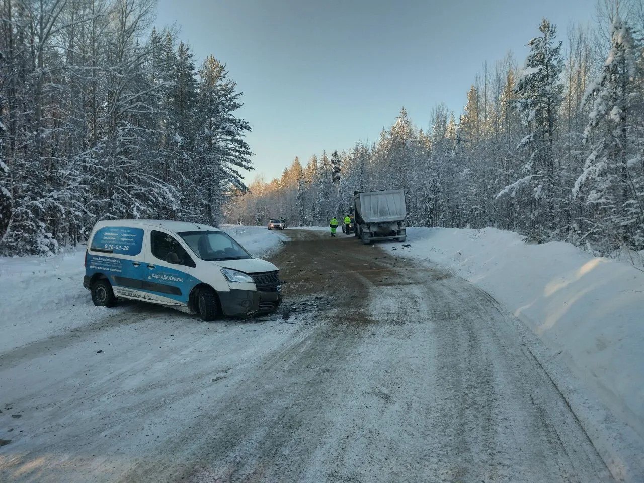 Авария случилась на 8-м км дороги «Лонка — Калевала». Столкнулись автомобиль Suzuki Berlingo и грузовик  Scania.  К месту вызова незамедлительно выехали пожарные из поселка Кривой Порог.