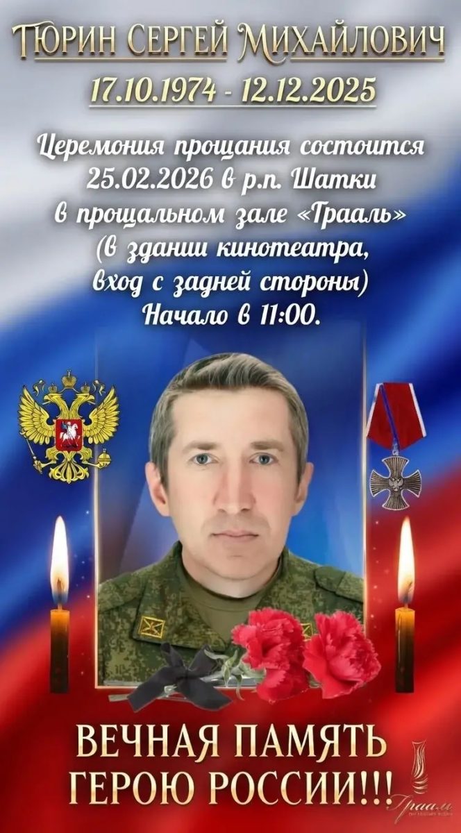 Прощание с бойцом состоится сегодня, 25 февраля. Траурная церемония пройдет в поселке Шатки Нижегородской области.