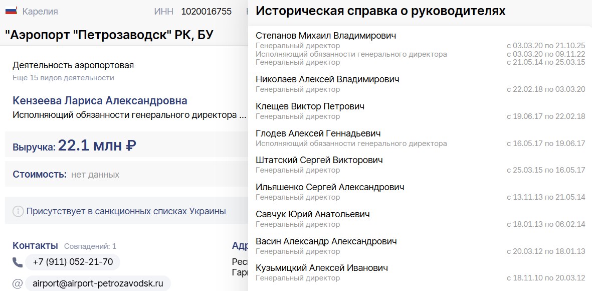 Предыдущий и.о. директора Лариса Кензеева продержалась на должности три с половиной месяца. За последние 14 лет это уже 11-й руководитель аэропорта. Так, с 2017 по 2022 год директором аэропорта был муж вице-премьера правительства. В 2022 году он умер, ему было всего 48 лет.