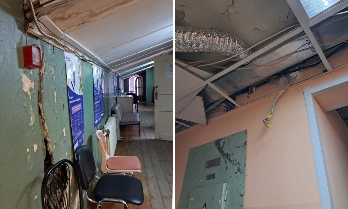 Жители Лахденпохьи пожаловались на состояние нового отделения дневного пребывания местной больницы. Здание — памятник архитектуры, оно расположено на улице Красноармейской, 9. Недавно там ремонтировали кровлю, но до интерьеров, видимо, не добрались.