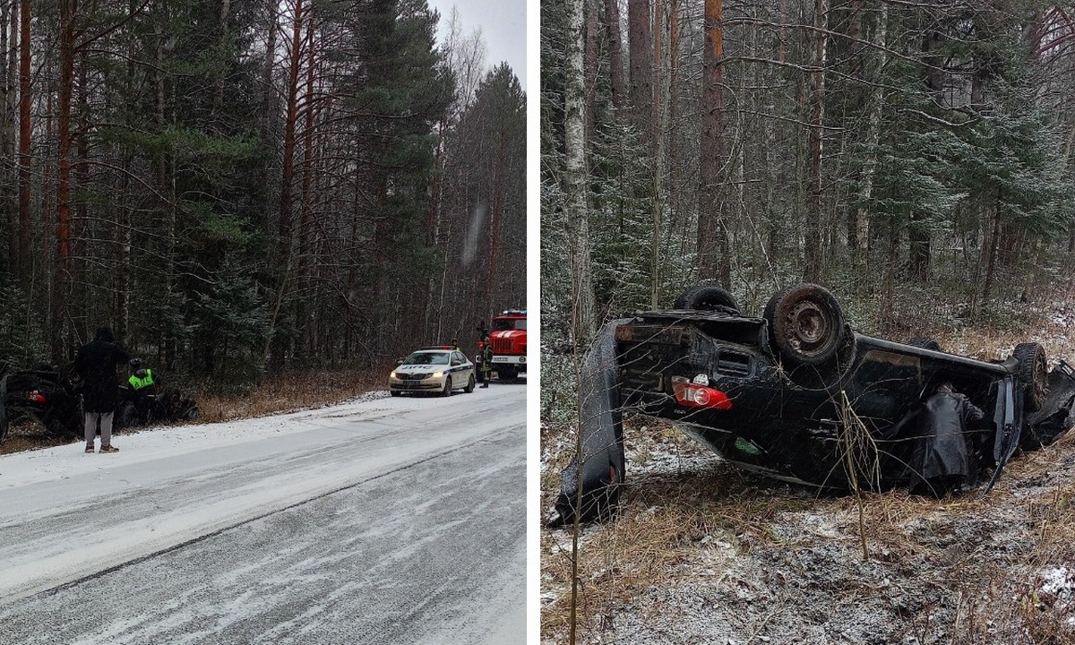 Автомобиль опрокинулся на крышу на трассе в Карелии