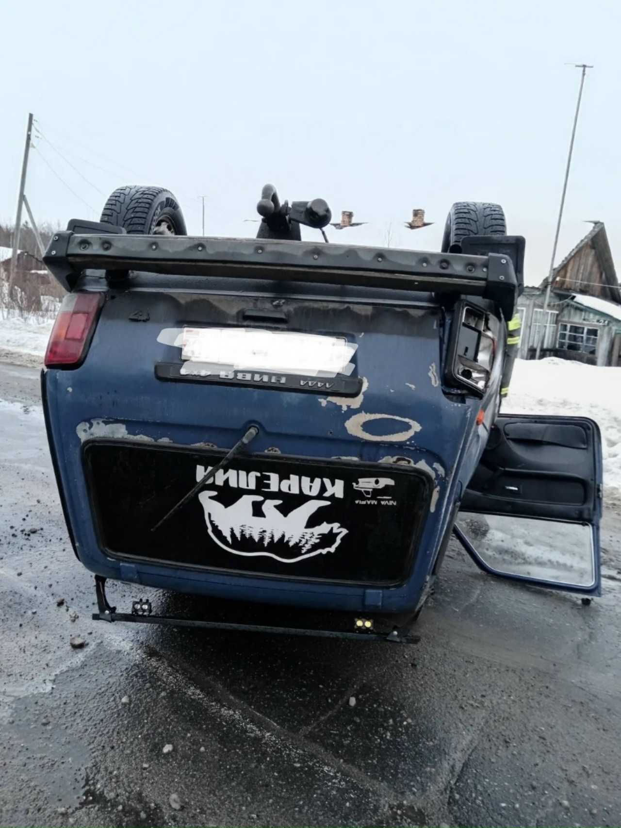Автомобиль «Нива» перевернулся на крышу, из него вылилось топливо. Внутри машины никого не было.