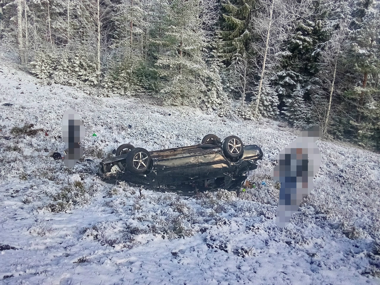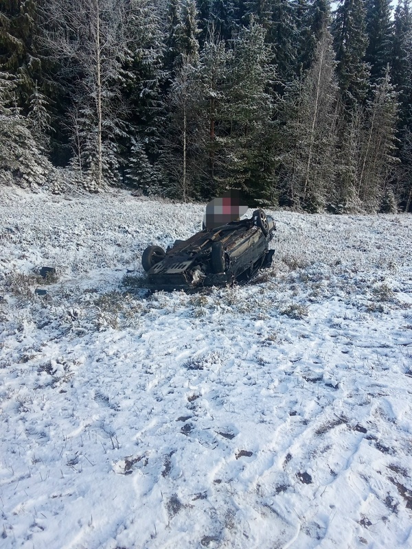 Автомобиль перевернулся на заснеженной трассе в Карелии