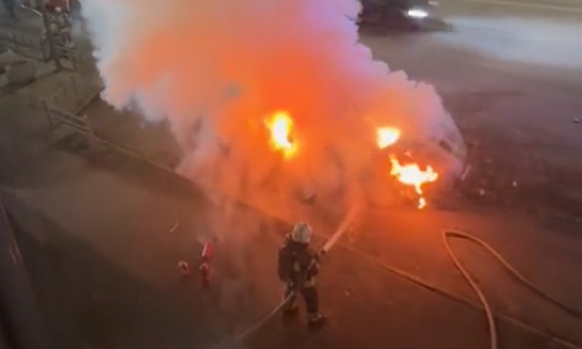 Сегодня ночью автомобиль вспыхнул в центре Петрозаводска.