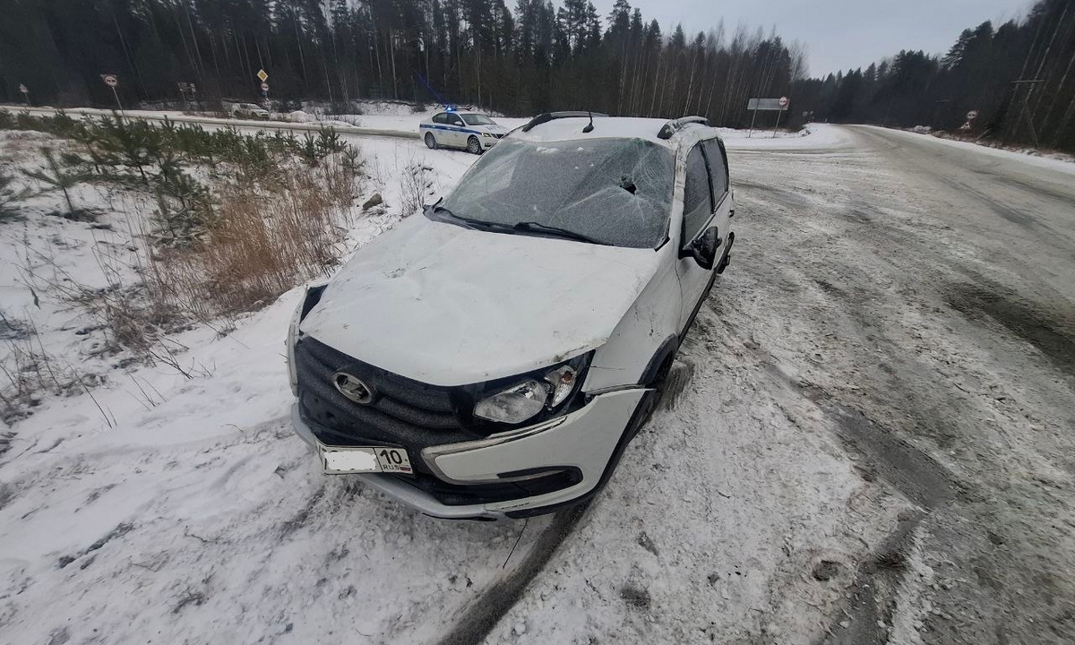 При прохождении правого поворота, на 61 км дороги «Петрозаводск-Суоярви», 26-летняя водитель Лада Гранта допустила занос и вылетела в кювет. Машина опрокинулась.