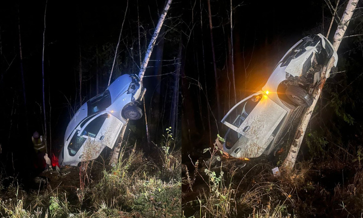 Автомобиль улетел на дерево под Петрозаводском: есть пострадавшие