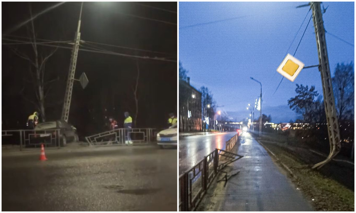 Автомобиль жестко врезался в столб в Петрозаводске: есть пострадавший