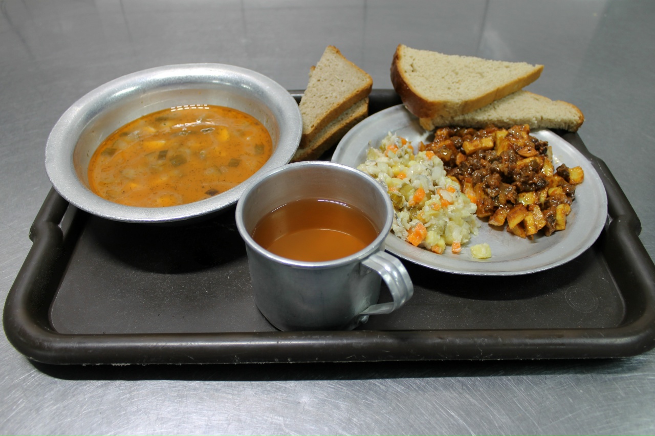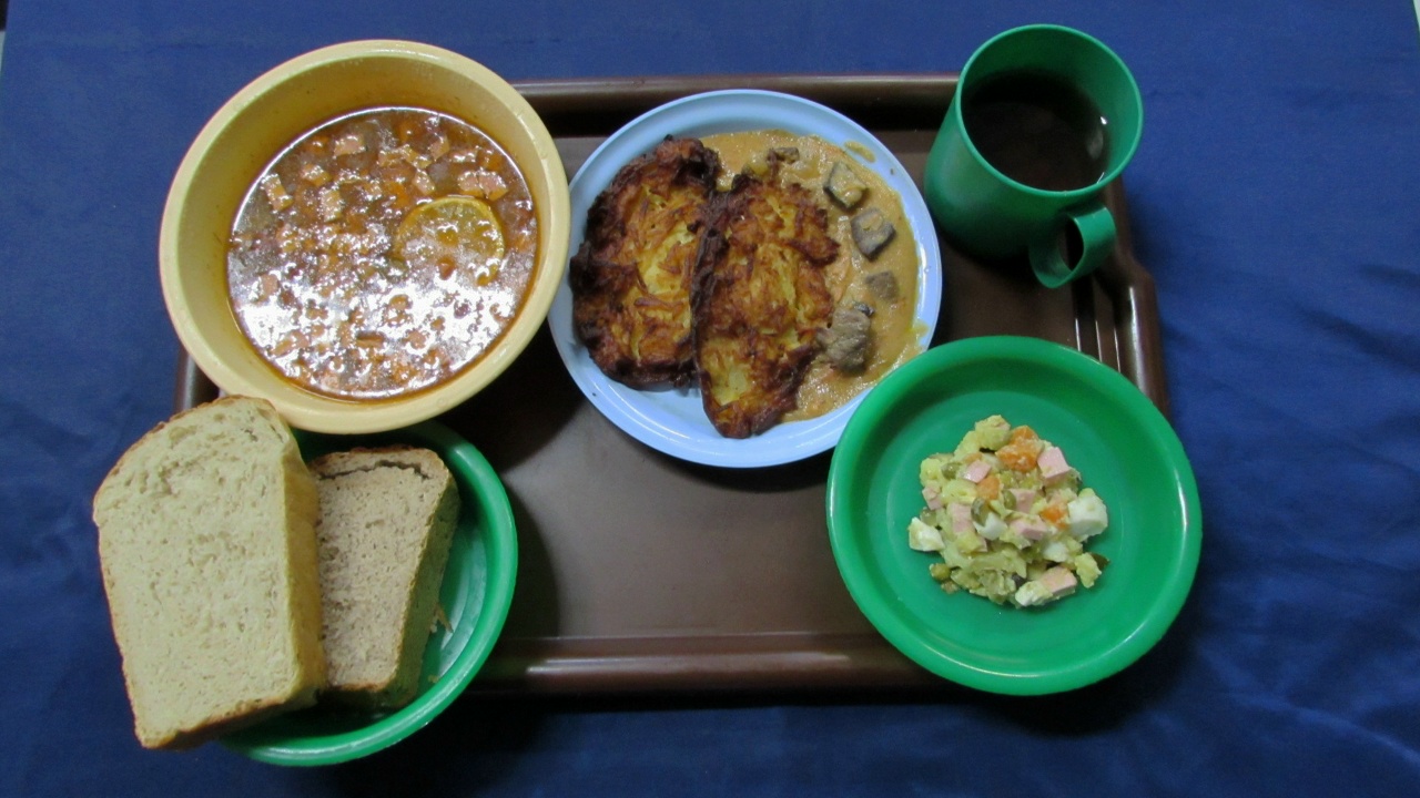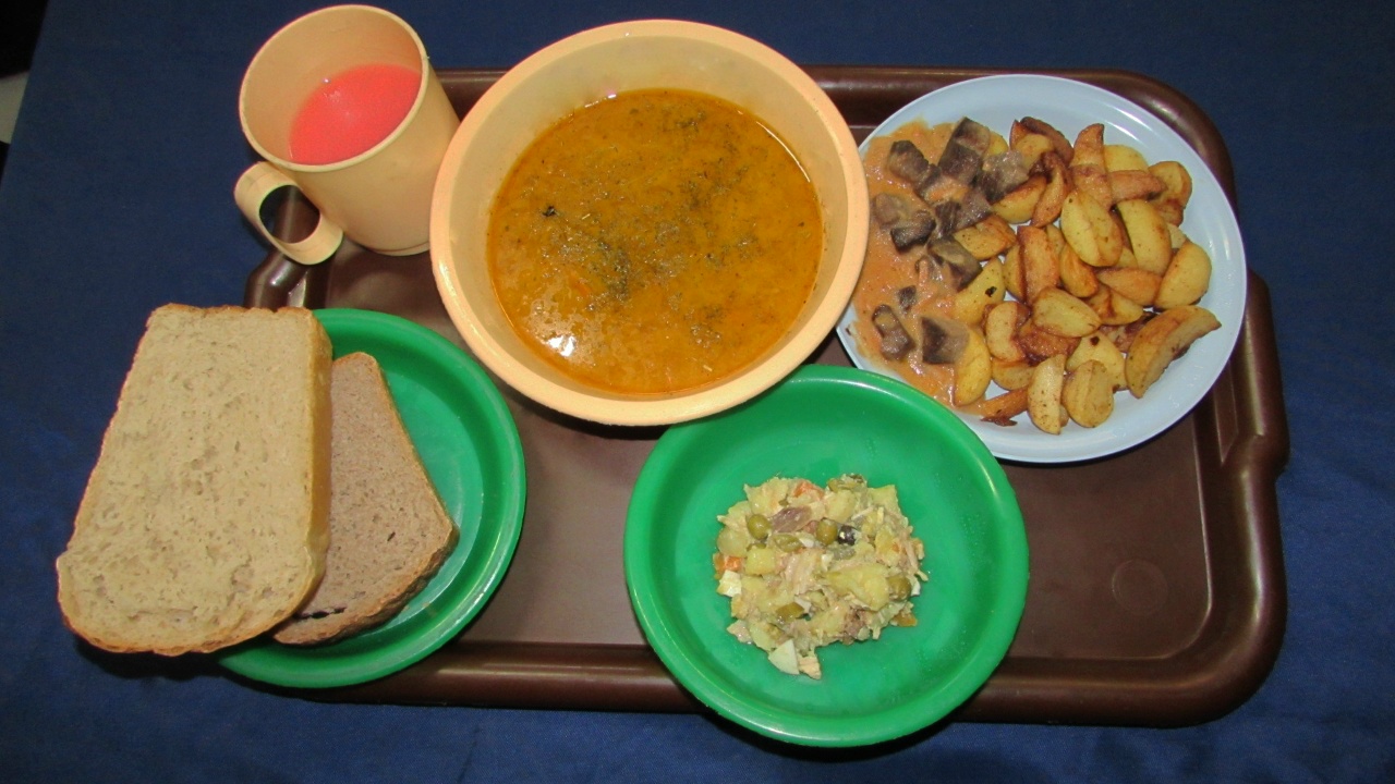 Обед у заключенных в карелии состоял из трех блюд. Например, в Исправительной колонии №7 подавали оливье, борщ и картофель отварной с мясом птицы. В Следственном изоляторе №1 – салат витаминный, харчо с мясом куры и чашушули по-грузински из говядины с овощами. А в Республиканской больнице №2, где отбывают наказание граждане, имеющие проблемы со здоровьем, было несколько вариантов трапезы: салат столичный, щи по-русски из квашеной капусты с фрикадельками из говядины и мясо по-кремлевски с жареным картофелем или салат рыбный, рассольник ленинградский с крупой перловой на говяжьем бульоне и азу из говядины с картофельными дольками.