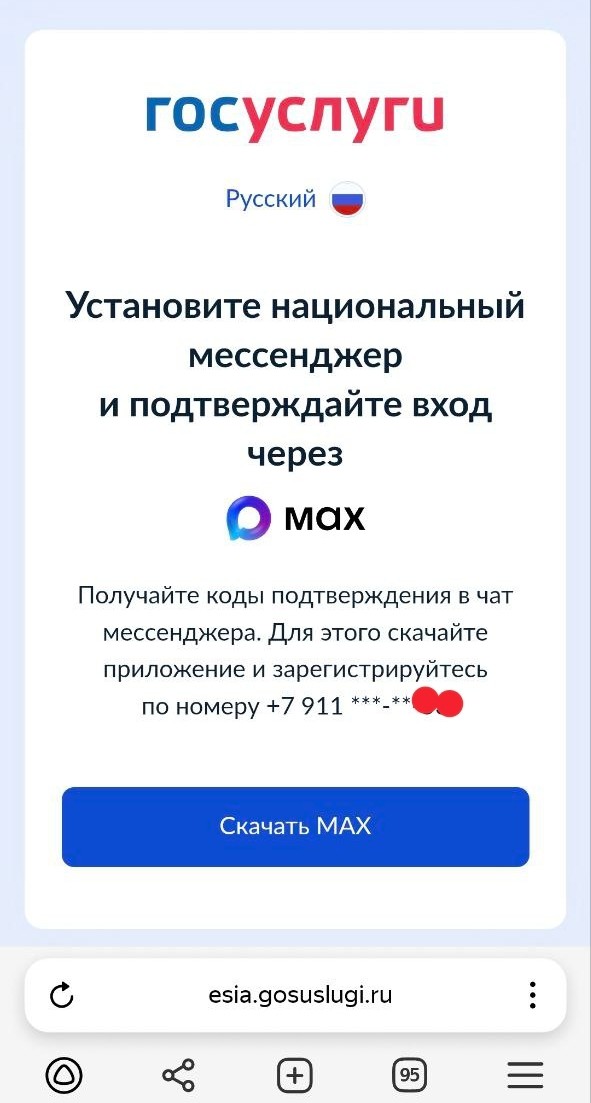 Чтобы зайти на «Госуслуги» с мобильного телефона, приложение предлагает установить мессенджер Max, а не отправить привычный СМС-код для подтверждения входа. На нововведение обратили внимание и наши читатели.