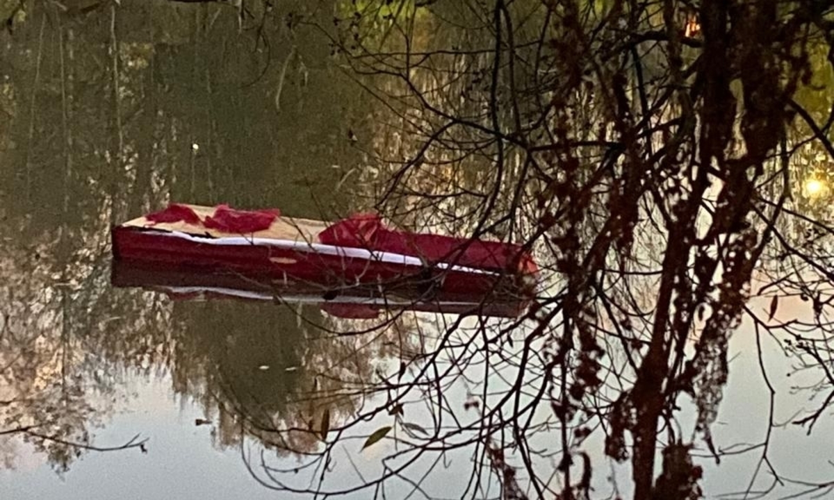 Необычная находка попалась на глаза жителям Всеволожска (Ленинградская область) — дрейфующий по озеру гроб. Обитый красной тканью, он спокойно плавал по озеру Школьное.