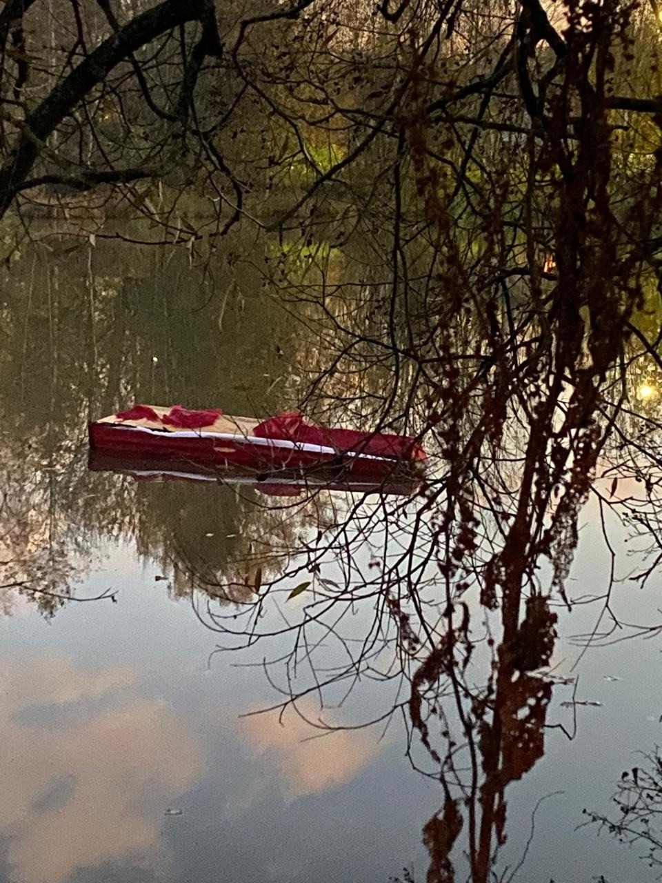 Необычная находка попалась на глаза жителям Всеволожска (Ленинградская область) — дрейфующий по озеру гроб. Обитый красной тканью, он спокойно плавал по озеру Школьное.