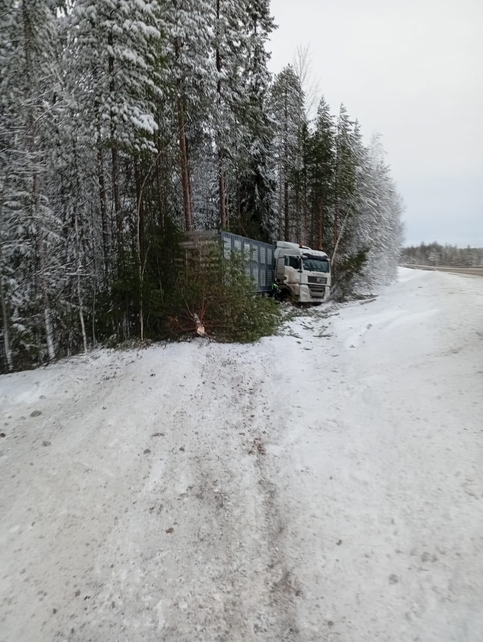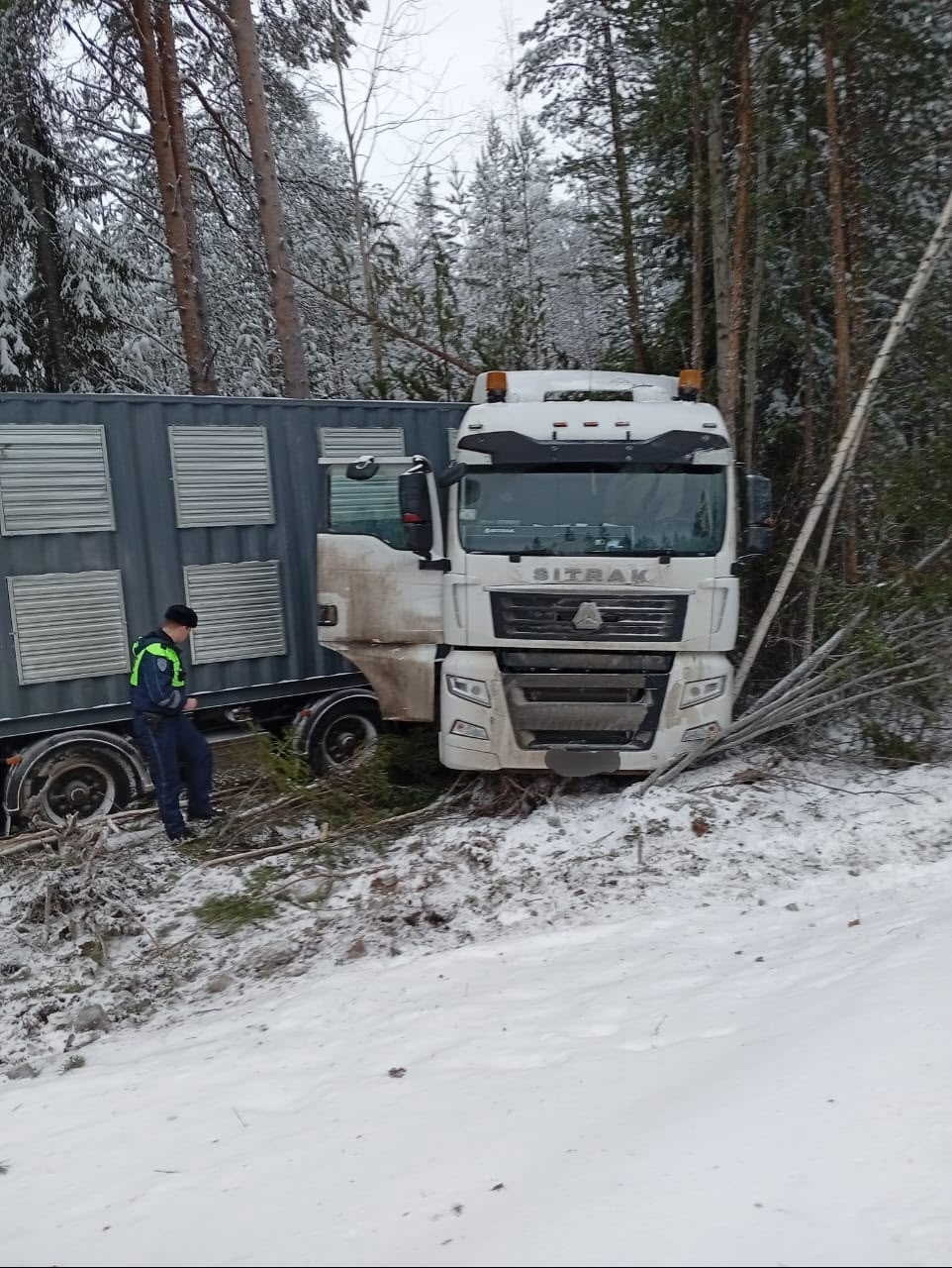 В 12:57 лоухские пожарные получили сообщение о ДТП на 990 км трассы «Кола». В кювет вылетела фура «SITRAK» с прицепом. Проведение аварийно-спасательных работ не потребовалось. Разлива топлива нет, пострадавших нет, сообщает Госкомитет Карелии по безопасности.