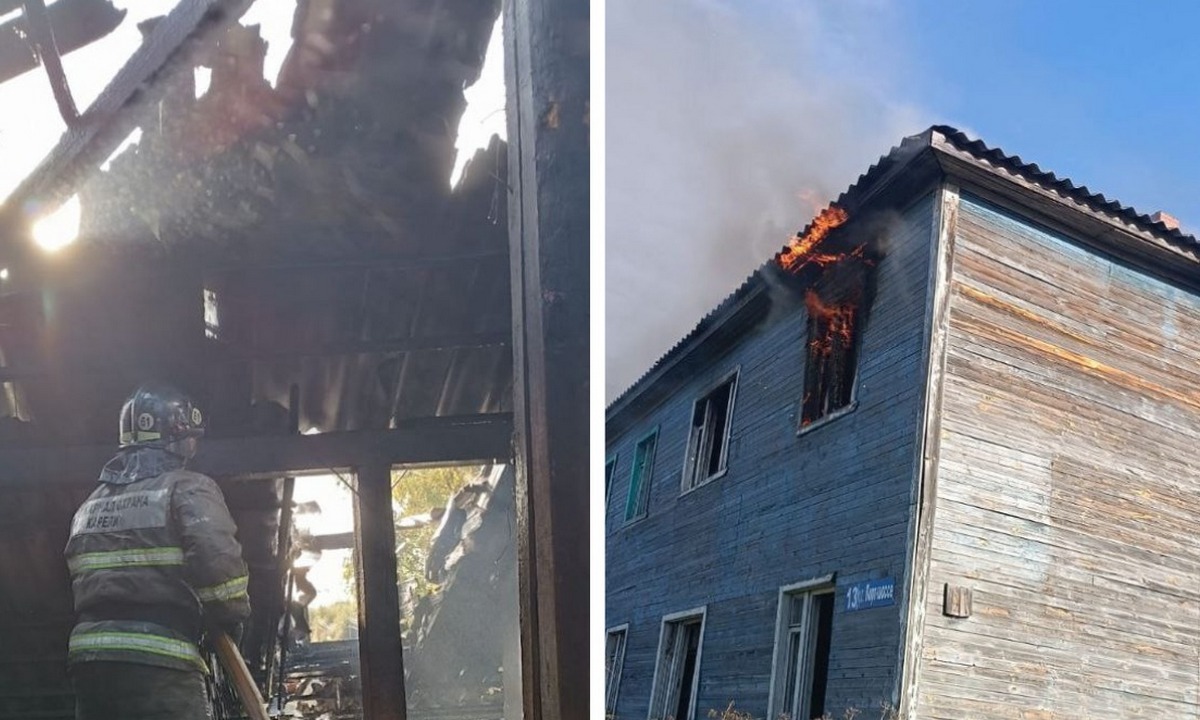 Вчера днем в Беломорске вспыхнул двухэтажный деревянный дом на улице Порт-шоссе, 13.