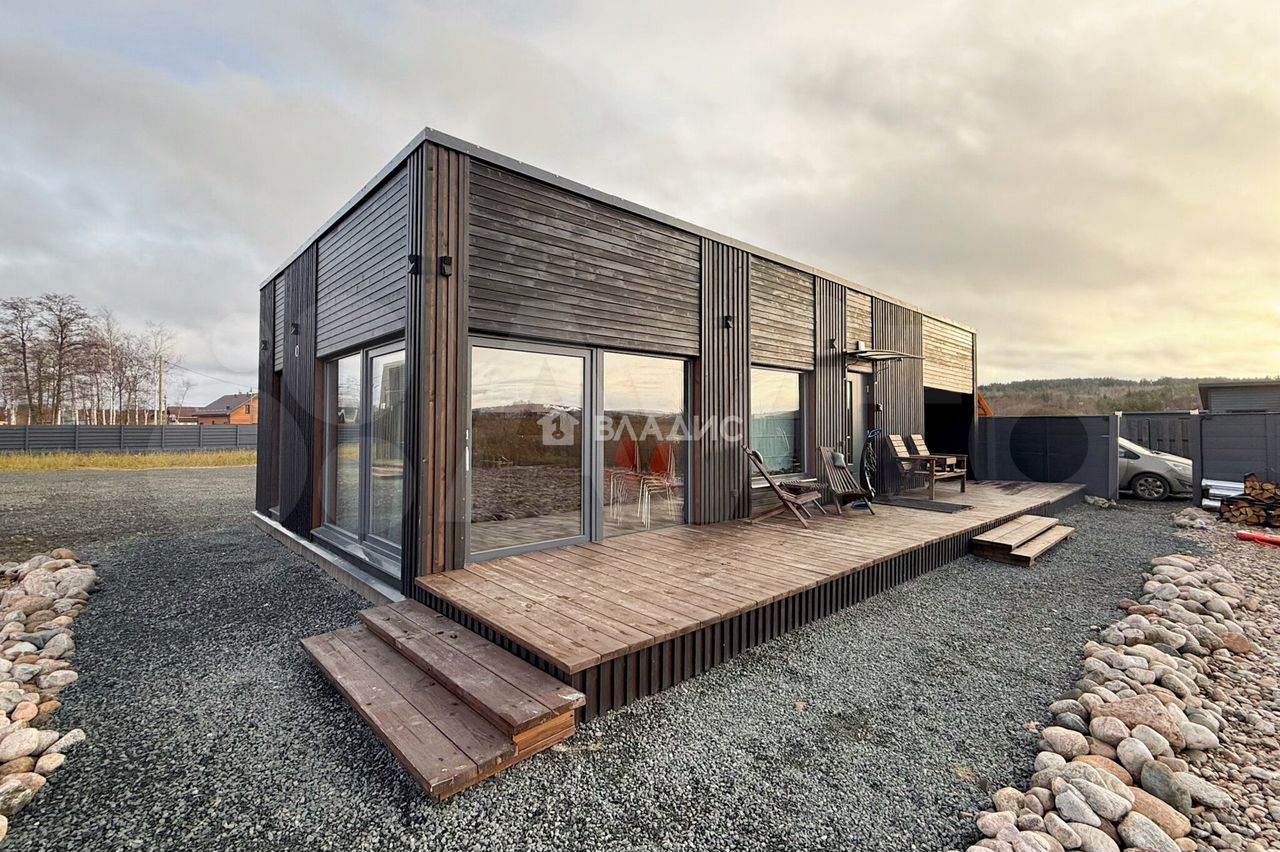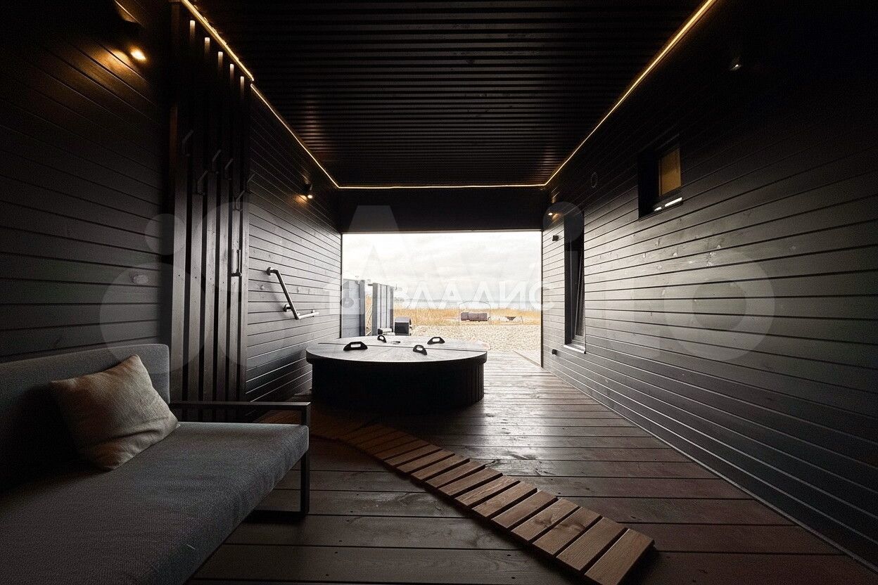 Участок ИЖС в 18,42 сотки (155 м²) находится на первой линии озера Логмозеро и огражден забором. На территории расположены два гостевых дома (43,2 м² и 34,8 м²) с зоной отдыха, а также банный комплекс в 77 м², но есть место и для новых построек. В одном домике могут комфортно отдыхать до четырех человек, в зоне отдыха с крытой террасой есть подогреваемая купель, а в банкетном зале с кухонным уголком — керамический гриль.