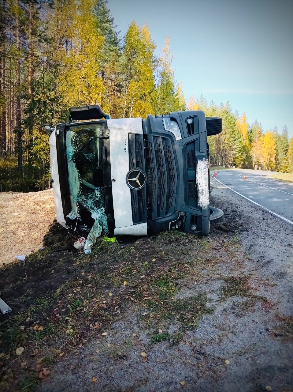 Авария произошла на 25-м км трассы Сегежа — Надвоицы. По данным сегежских спасателей, водитель получил травмы и был госпитализирован.