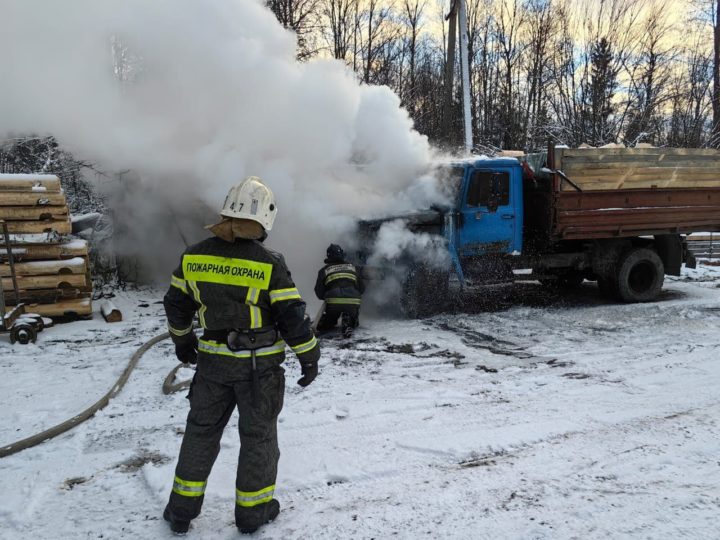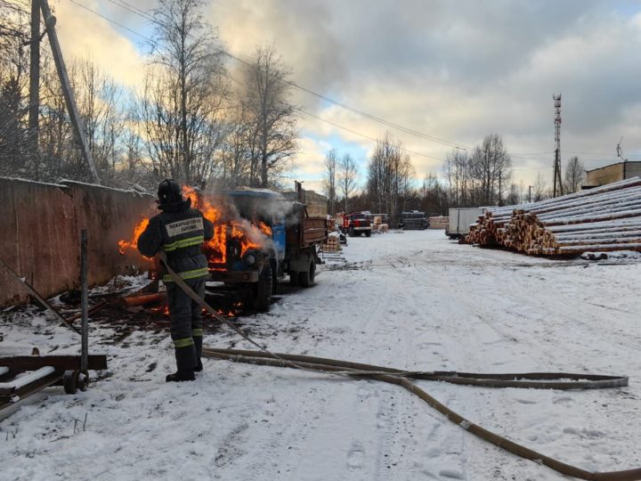 Сегодня днем в деревне Вилга вспыхнул грузовик ГАЗ.