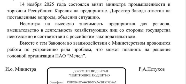 Ответ людям пришел из Министерства промышленности Карелии. Чиновники сухо объяснили, что вмешиваться в деятельность владельца, ПАО «Мечел», государство не может.