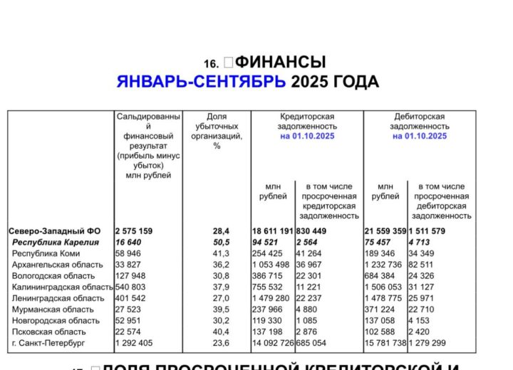 За январь—сентябрь 2025 года более половины предприятий в Карелии (50,5%) работали в убыток, следует из данных Карелиястата. Это худший показатель на Северо-Западе, где в среднем убытки фиксируют 28,4% компаний, заметила депутат ЗС РК Эмилия Слабунова.