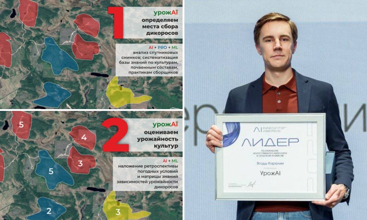 Приложение для сборщиков диких ягод компании «Ягоды Карелии» и ученых из ПетрГУ «УрожAI» стала лучшей в номинации «Лидер по внедрению искусственного интеллекта в сельском хозяйстве» федеральной премии AI INNOVATOR AWARDS.