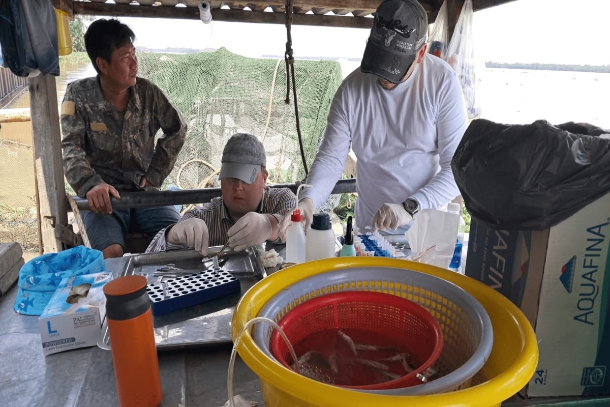 Два научных сотрудника КарНЦ РАН — научный сотрудник лаборатории экологической биохимии Виктор Воронин и старший научный сотрудник лаборатории экологии рыб и водных беспозвоночных Дмитрий Битютский — вместе с коллегами из Вьетнама провели 23-дневную экспедицию в дельте реки Меконг — крупнейшей реки полуострова Индокитай. Экспедиция продлилась с 19 ноября по 11 декабря 2025 года, рассказали в Академии наук Карелии.
