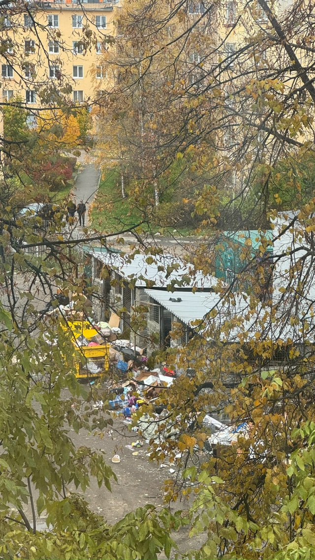Мусор вывозят раз в 2-3 дня, а иногда и реже. Летом это маскировала зелень, теперь площадка стала выглядеть еще хуже.