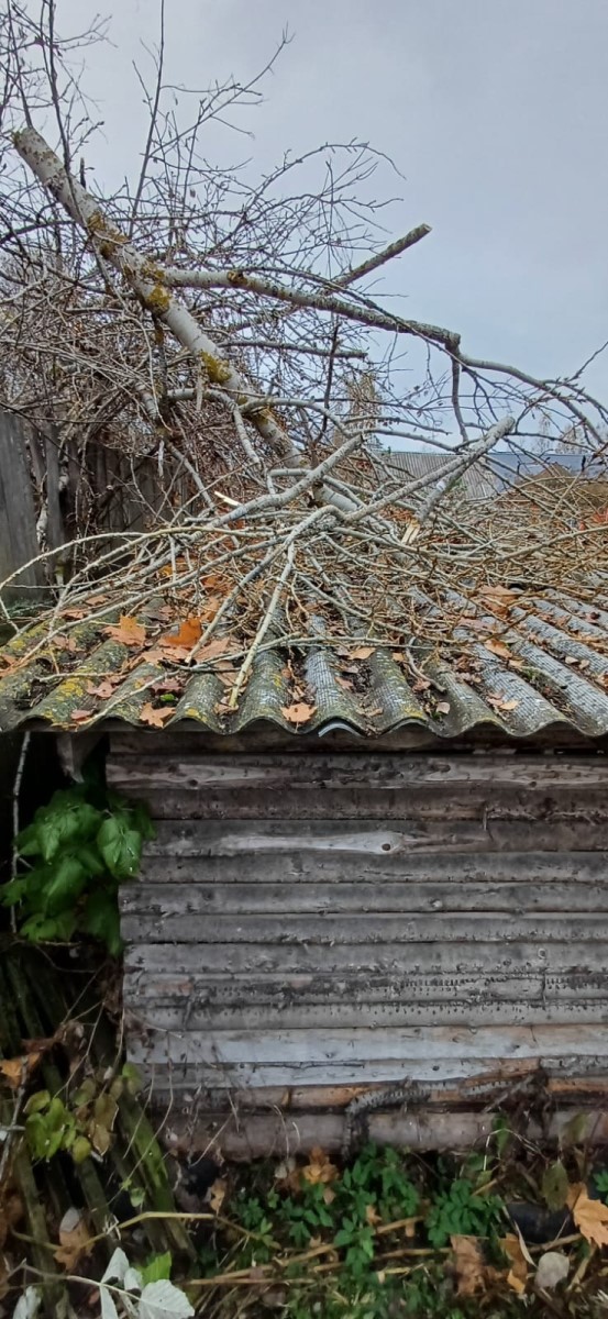 После спила дерево рухнуло прямо на соседний участок: повредило забор, снесло две теплицы, разрушило кровлю вольера и оборвало интернет-кабель. Об этом хозяйка участка написала в паблике «Подслушано в Олонце».