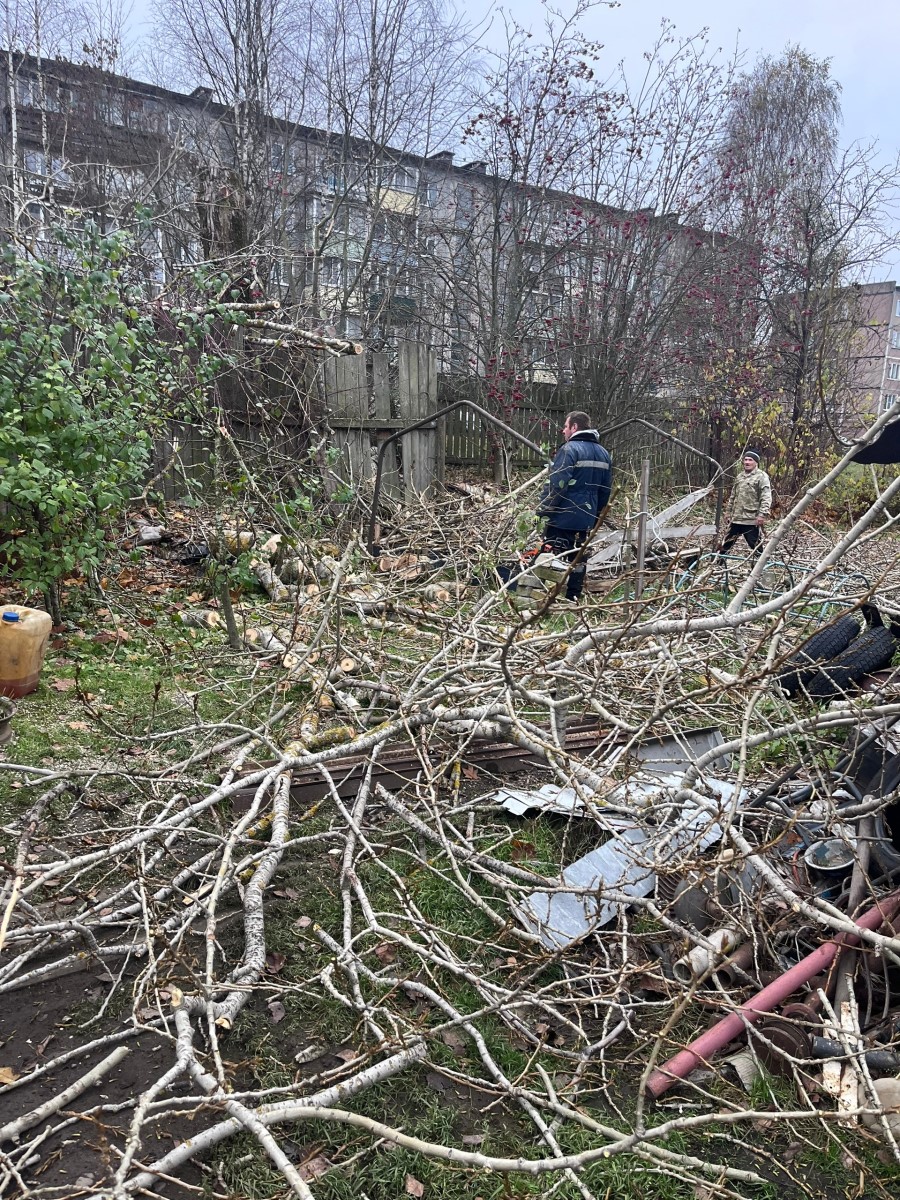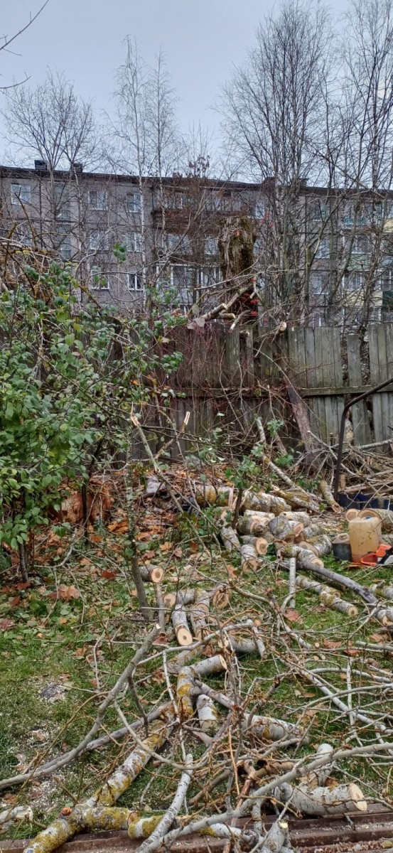 22 октября в Олонце бригада управляющей организации «ЖКХ Олонец» приехала спилить деревья на границе улицы Ленина, 25 и переулка Красноармейского, 8. Работы проводил сам директор Александр Ульянов.