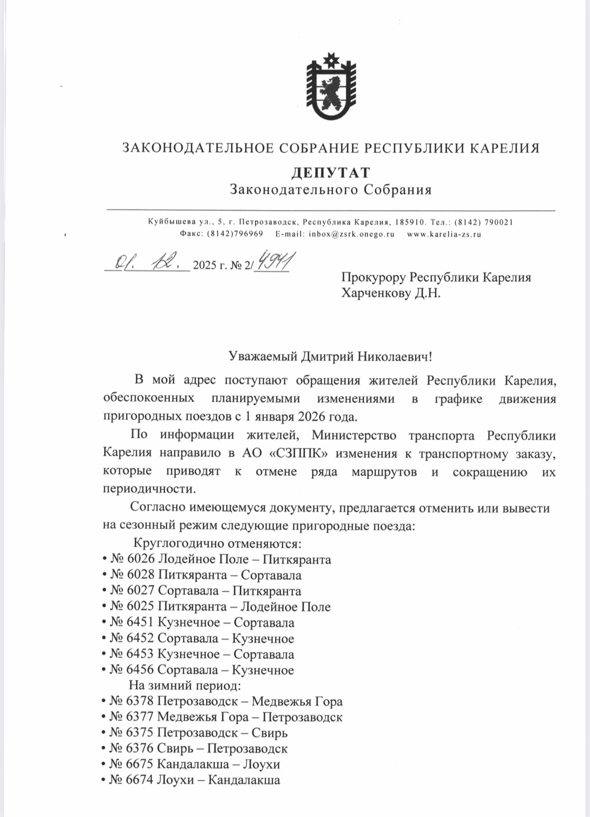 — Стало известно о планах Минтранса сократить транспортный заказ на 2026 год. В документе целый список отмен. Под угрозой рейсы, которые для многих оказались жизненно важными. Кто-то вовсе окажется без транспортной связи, — сообщил депутат ЗС РК Ройне Изюмов. — Министерство говорит, что денег нет, а значит сокращаем. Только цена таких решений всегда одна и та же. Люди теряют возможность нормально жить и работать.