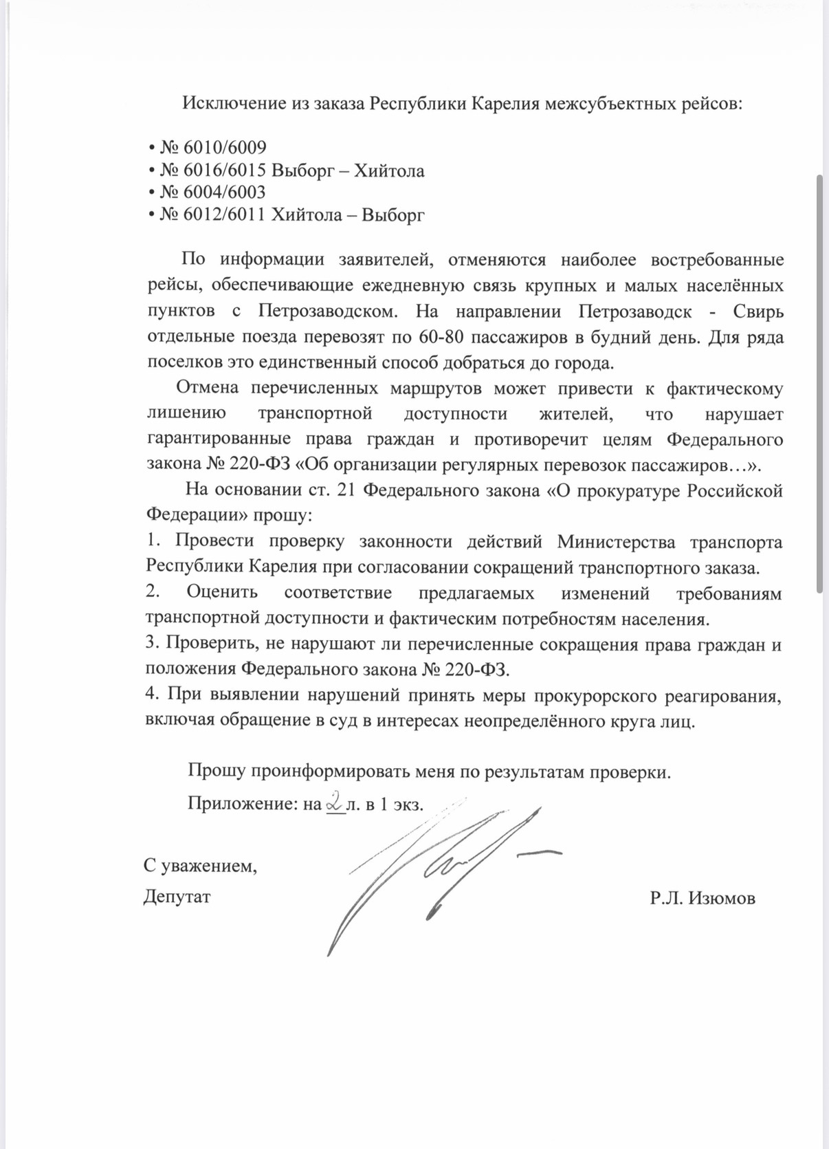 Изюмов направил обращение в прокуратуру с просьбой проверить законность сокращений и причины, по которым министерство принимает такие решения.