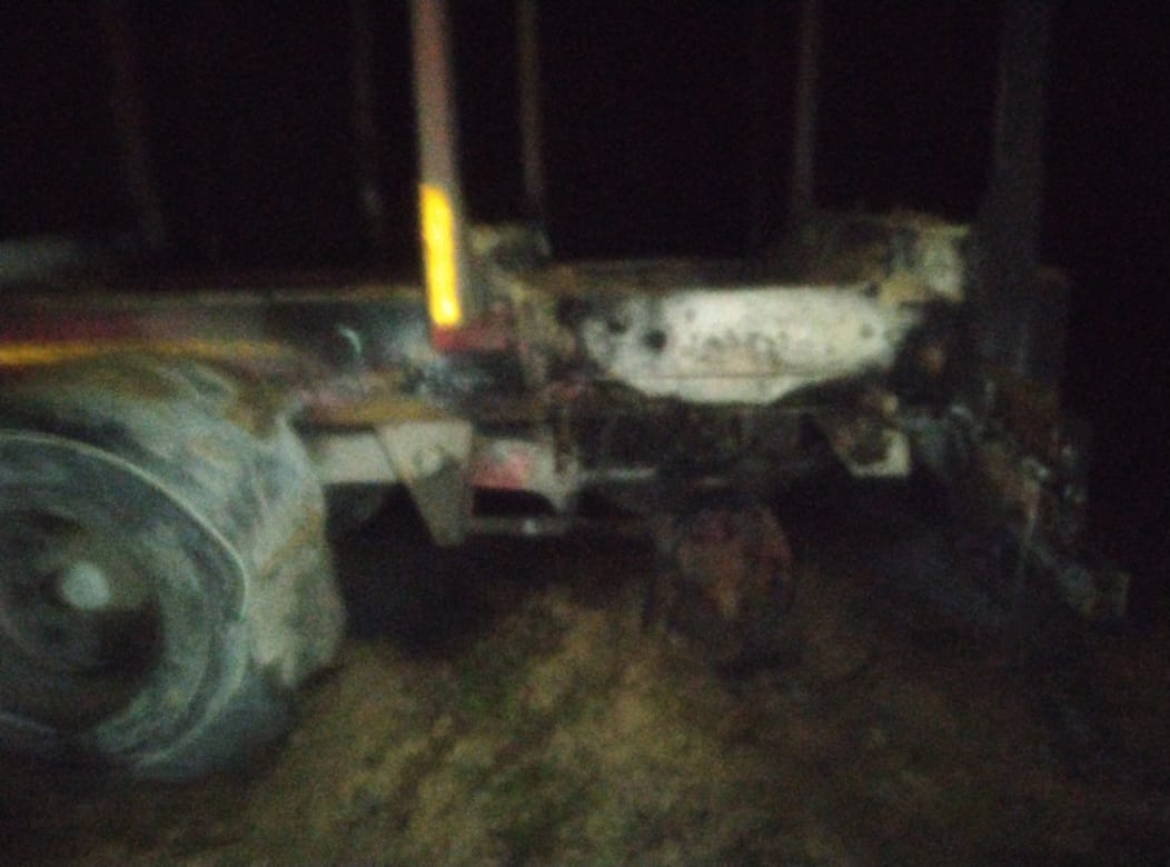 Вчера поздно вечером на трассе «Кола» загорелся лесовоз.