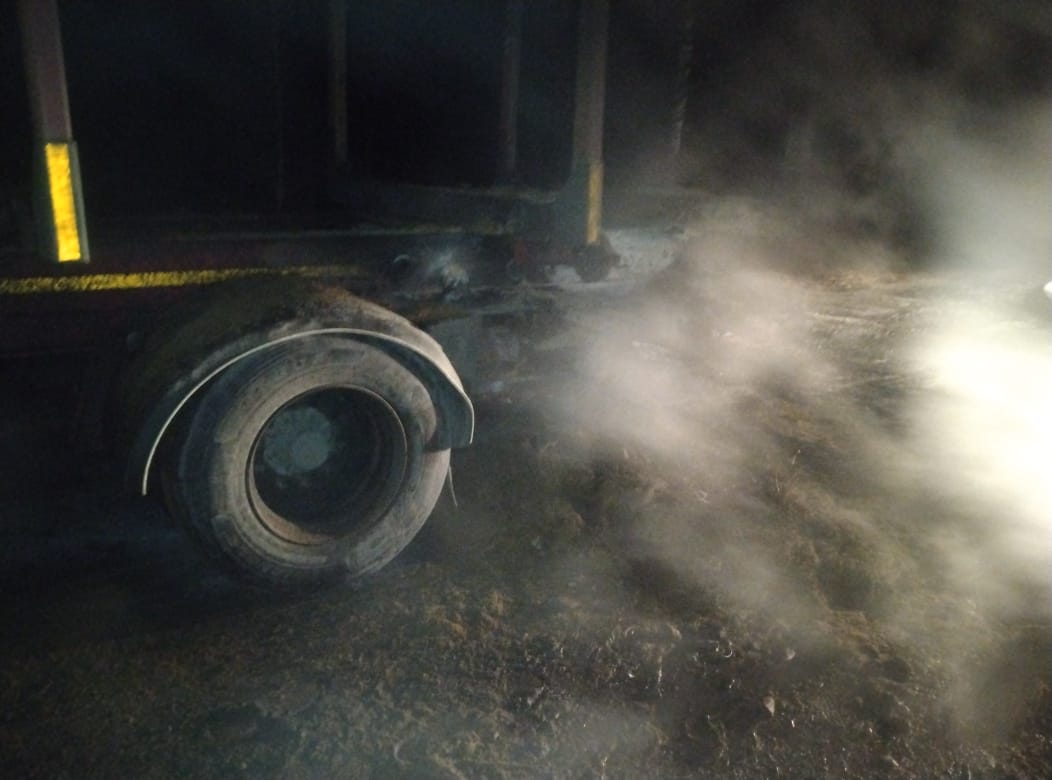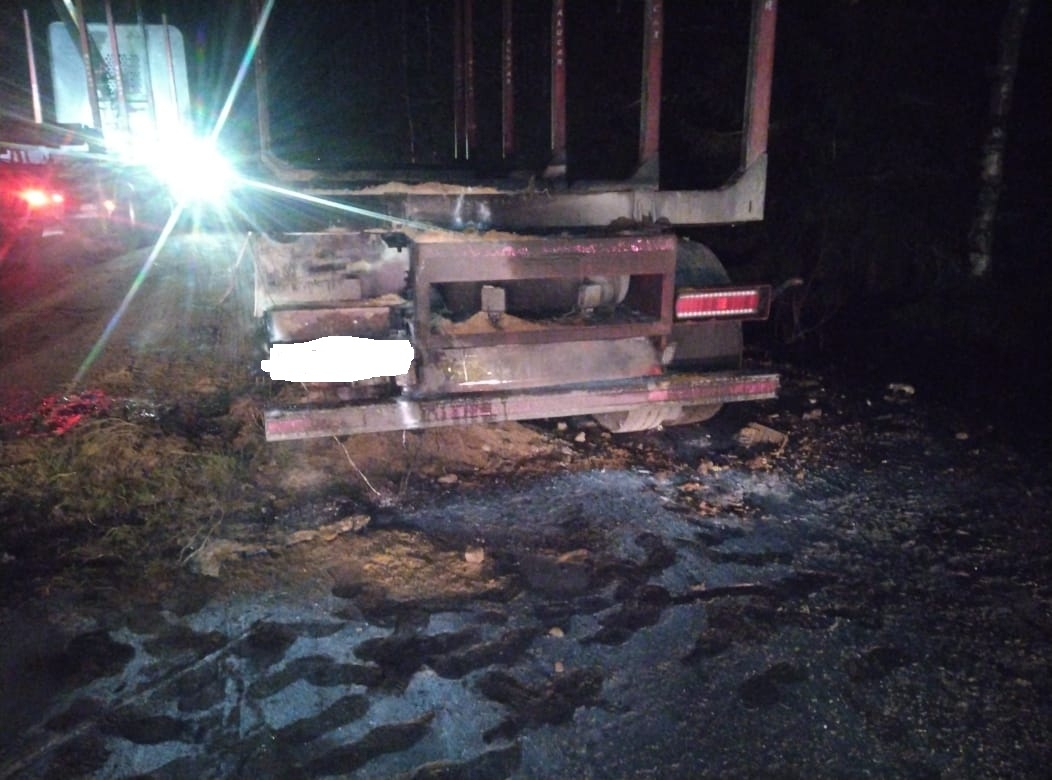 Как сообщают олонецкие спасатели, пожар случился в 22:01. На 344-м км трассы «Кола» загорелось колесо прицепа лесовоза.