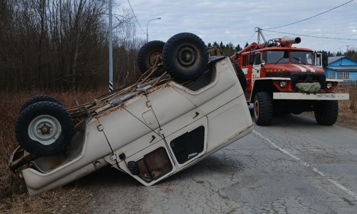 Машина перевернулась во время аварии в Карелии