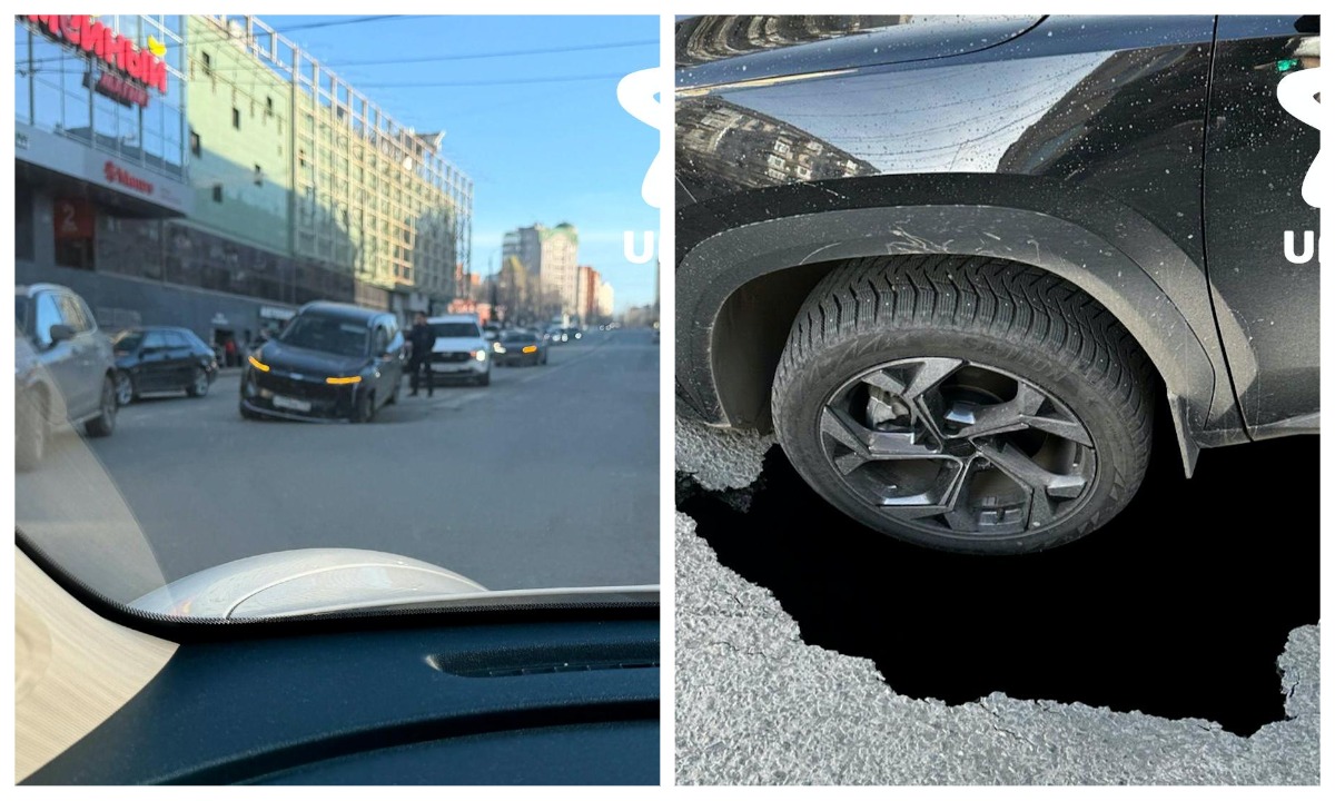 Машина провалилась в огромную яму в центре города