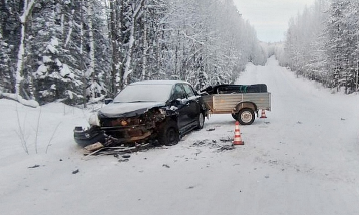 11 февраля около 14:15 на подъезде к поселку Куганаволок в Пудожском районе столкнулись два автомобиля: Hyundai Tiida с прицепом и Renault Logan.