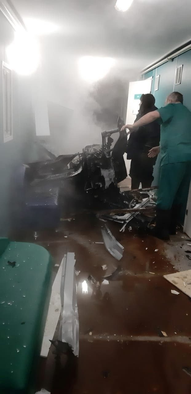 В больнице после наезда остались выбитое окно и сломанные двери, залитый кипятком пол.