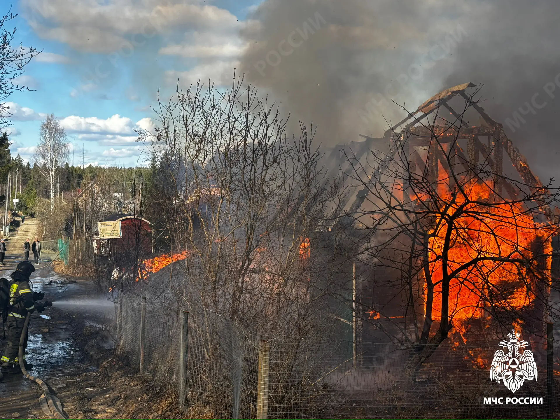 В Прионежском районе на станции Орзега на улице Гористой горят два дома и две хозяйственные постройки.